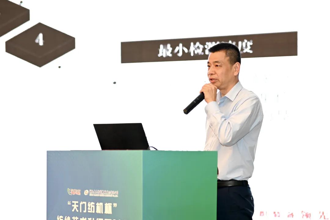 天門紡機品控總監(jiān)樊早斌進行了題為《并條機的新技術與自調勻整技術》的專題演講,重點講解了并條機在紡紗工序中的地位與作用,并條工序升級的重要性,其中闡述了運用模塊化的設計和智能自動化以及DSP技術的應用等,響應了天門紡機“當民族工業(yè)精益表率,做紡織裝備領先企業(yè)”的愿景。
