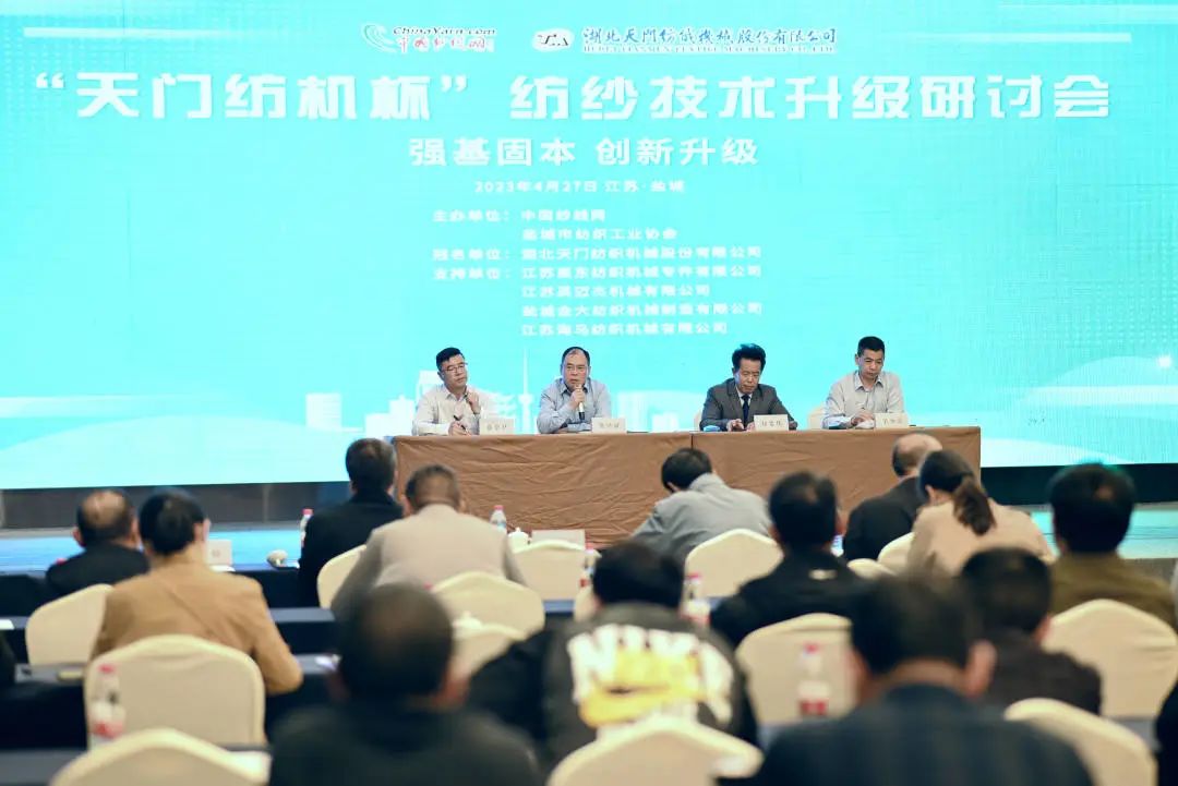 2023年4月27日,“天門紡機杯”紡紗技術升級研討會在江蘇鹽城瀛洲開元大酒店舉行。