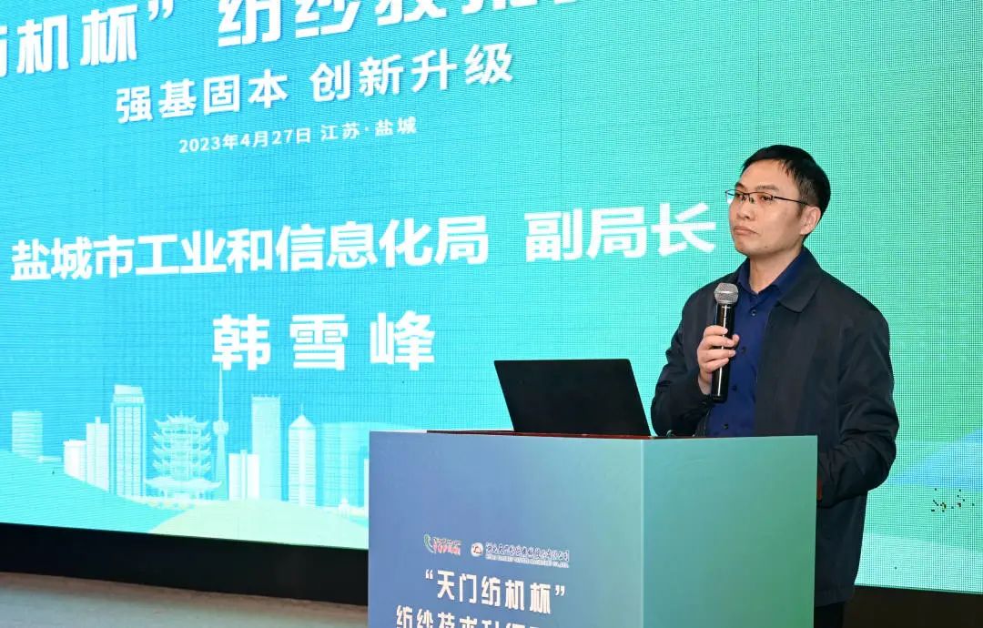 當天下午,舉行了開幕式及主題報告演講,鹽城市工業(yè)和信息化局副局長韓雪峰、鹽城市紡織工業(yè)協會會長戴俊等領導出席會議并分別致辭,他們對“天門紡機杯”的舉辦表示歡迎,希望通過本次活動,加強多地紡織企業(yè)的交流與探討,使鹽城更好地了解市場需求和技術趨勢,探索鹽城紡織技術的創(chuàng)新與升級之路。