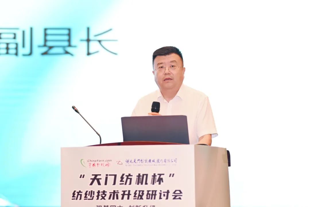 在當(dāng)天下午舉行的開幕式及主題報(bào)告會上,沛縣縣委常委、常務(wù)副縣長辛松,沛縣紡織協(xié)會會長董良騮,天門紡機(jī)總經(jīng)理焦倫進(jìn),中國紗線網(wǎng)總編王果剛等領(lǐng)導(dǎo)先后致辭。