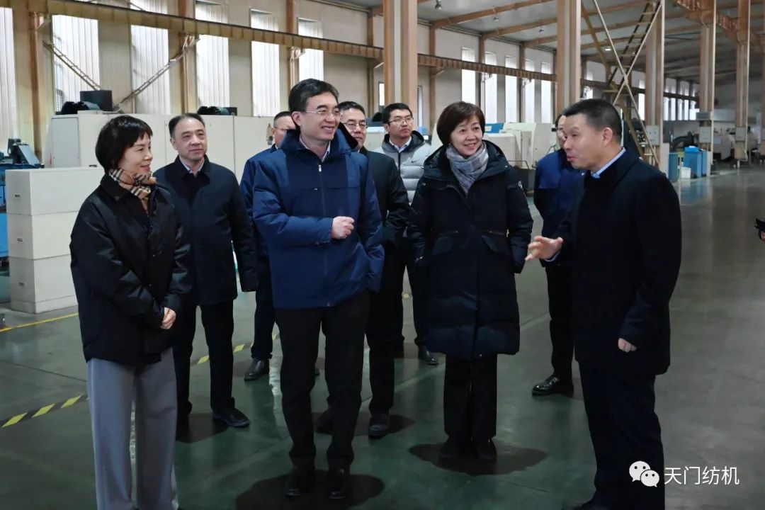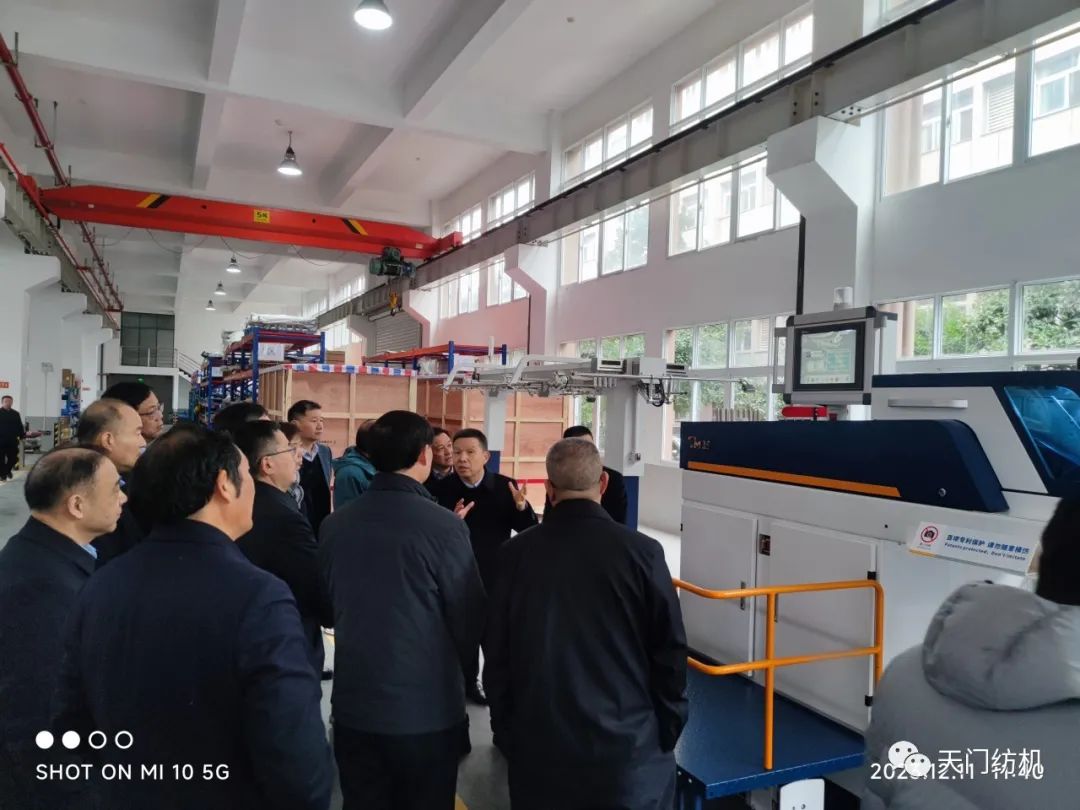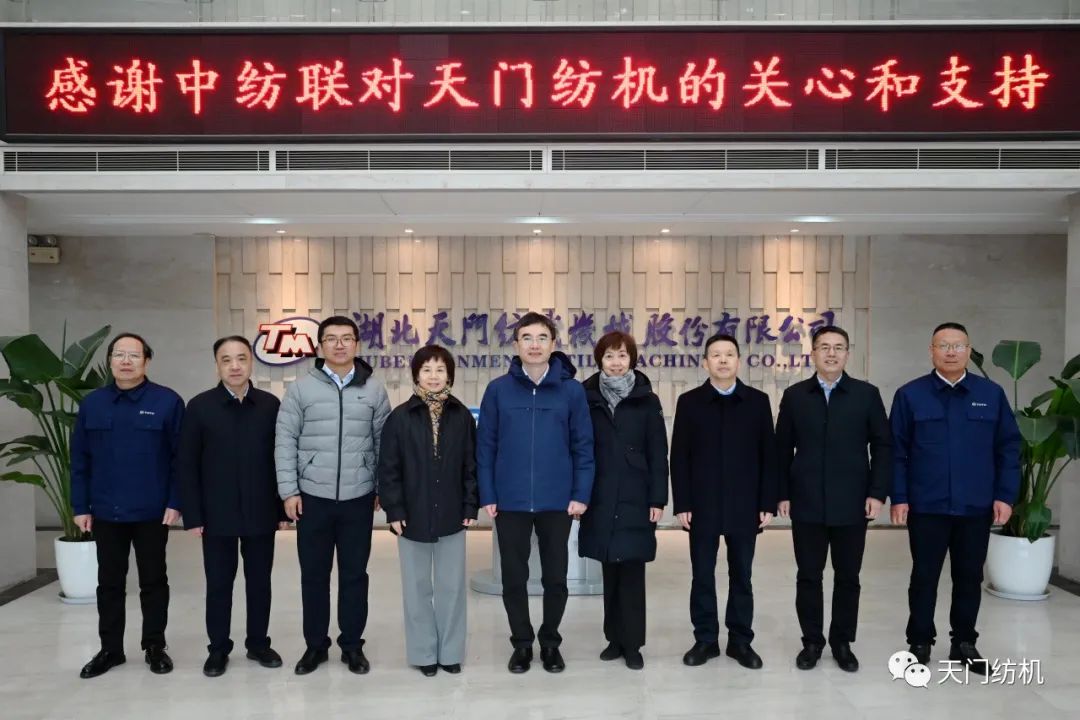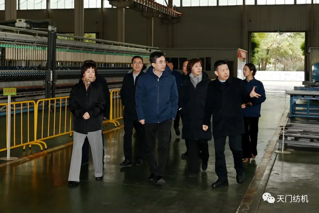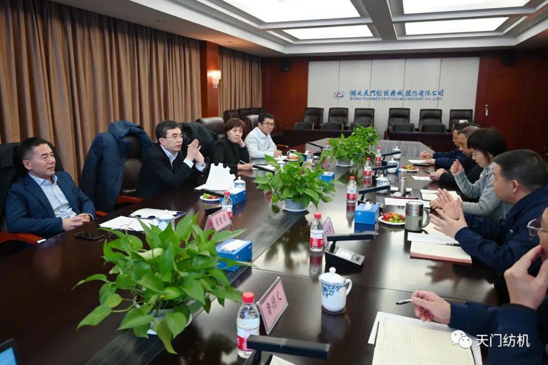 2023年12月11日,中國(guó)紡織工業(yè)聯(lián)合會(huì)副會(huì)長(zhǎng)端小平,中國(guó)紡織工業(yè)聯(lián)合會(huì)信息中心黨委書(shū)記、社會(huì)責(zé)任辦主任閻巖,中國(guó)棉紡織行業(yè)協(xié)會(huì)會(huì)長(zhǎng)董奎勇、副會(huì)長(zhǎng)景慎全等領(lǐng)導(dǎo)專(zhuān)程調(diào)研天門(mén)紡機(jī)位于武漢的研發(fā)中心及天門(mén)基地。