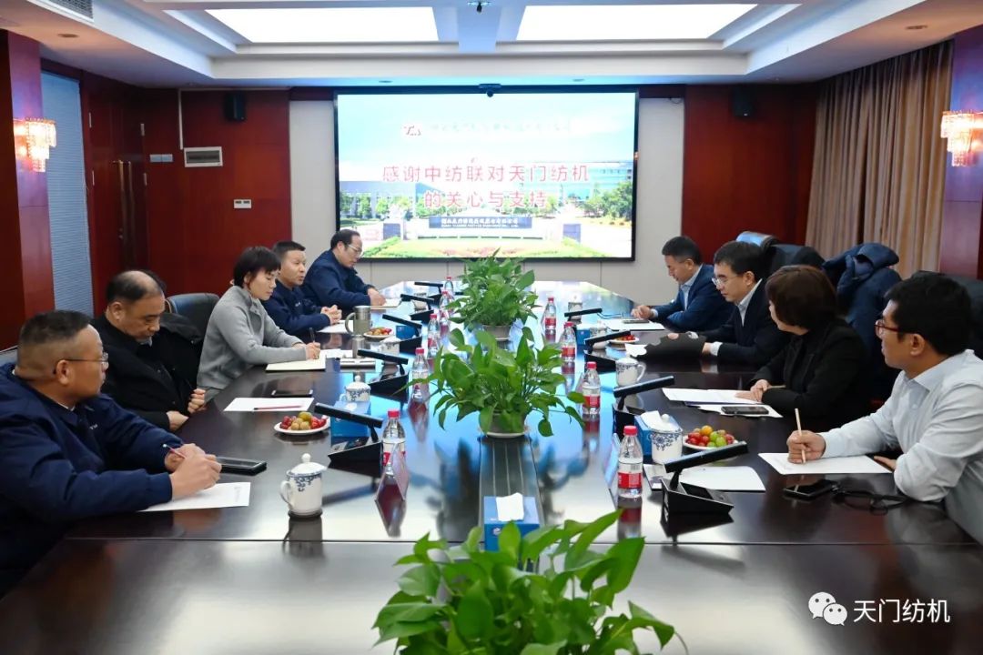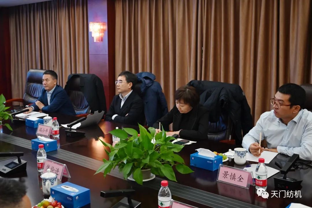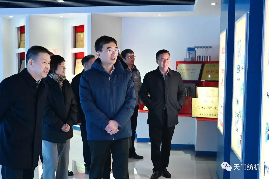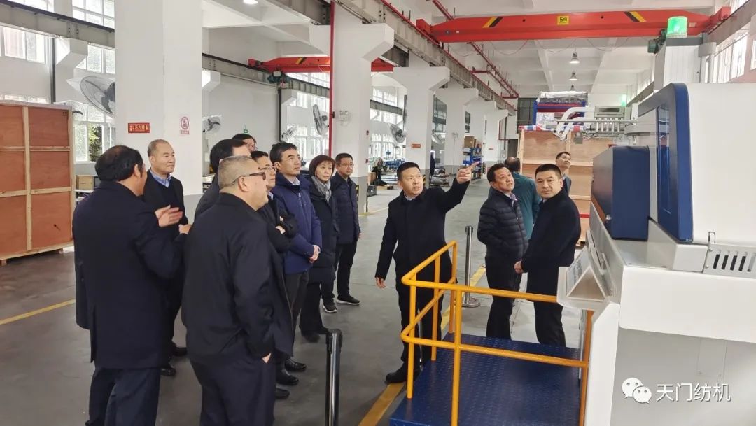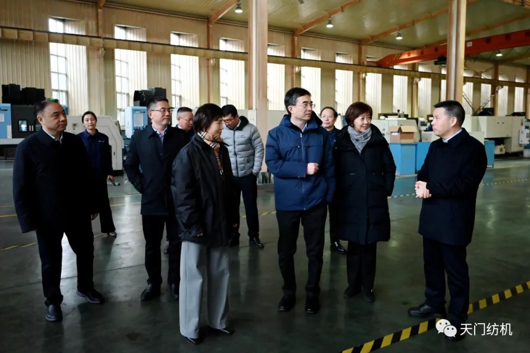 2023年12月11日,中國(guó)紡織工業(yè)聯(lián)合會(huì)副會(huì)長(zhǎng)端小平,中國(guó)紡織工業(yè)聯(lián)合會(huì)信息中心黨委書(shū)記、社會(huì)責(zé)任辦主任閻巖,中國(guó)棉紡織行業(yè)協(xié)會(huì)會(huì)長(zhǎng)董奎勇、副會(huì)長(zhǎng)景慎全等領(lǐng)導(dǎo)專(zhuān)程調(diào)研天門(mén)紡機(jī)位于武漢的研發(fā)中心及天門(mén)基地。