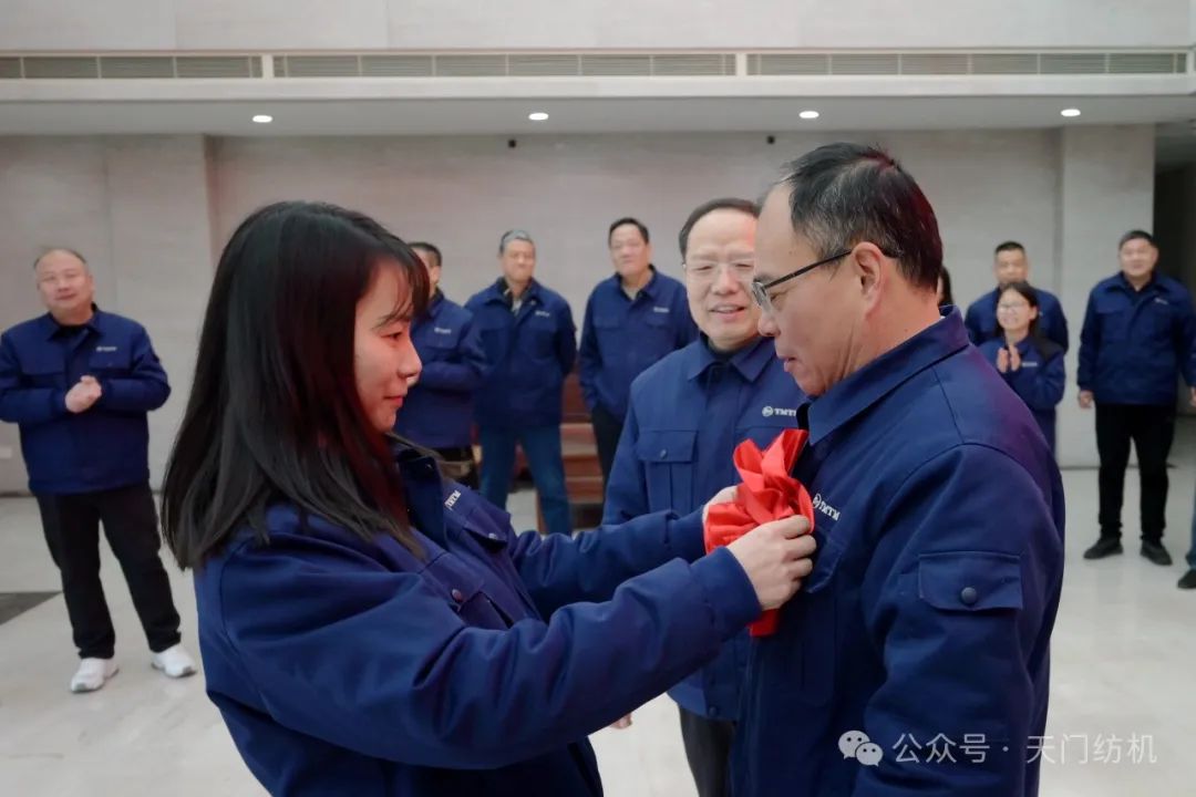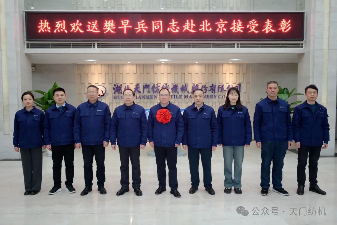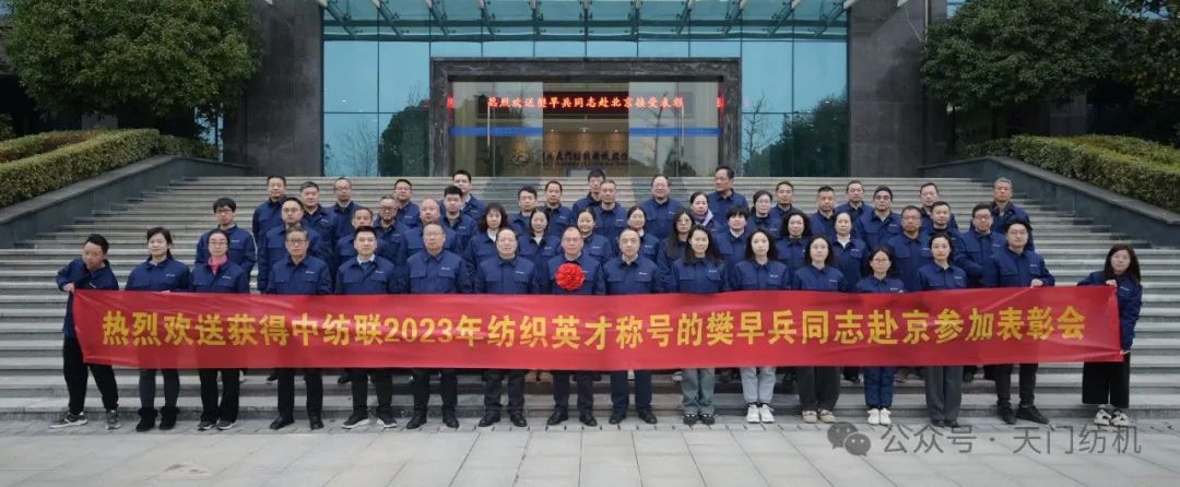 2024年1月15日上午,天門紡機(jī)部室員工齊聚科技樓大廳,歡送公司品控總監(jiān)、高級(jí)檢驗(yàn)師樊早兵同志赴京參加“2023年中國紡織人才大會(huì)”。公司總經(jīng)理焦倫進(jìn)在歡送活動(dòng)中即席講話,他說,樊早兵同志被授予“2023年度新時(shí)代紡織英才”,是中紡聯(lián)對(duì)他取得的顯著成績及奉獻(xiàn)精神的充分肯定,實(shí)至名歸。他得到如此殊榮是天門紡機(jī)的驕傲,全體員工要以他為榜樣,努力工作,奮發(fā)有為,為公司高質(zhì)量發(fā)展貢獻(xiàn)應(yīng)有的力量。送行的員工敲鑼打鼓,載歌載舞,把現(xiàn)場(chǎng)氣氛推向高潮。