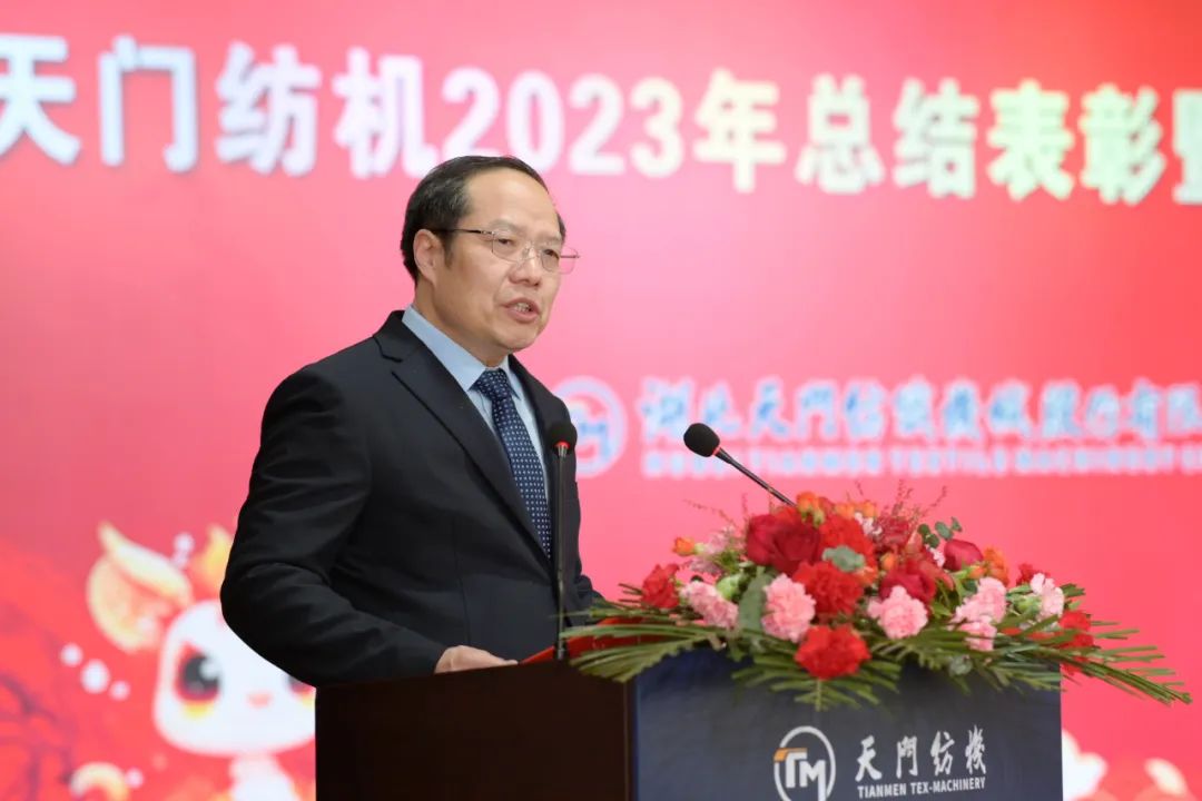 公司總經(jīng)理焦倫進作工作報告。他說,2023年,天門紡機堅持守正創(chuàng)新,扎實推進高質(zhì)量發(fā)展,穩(wěn)中求進,取得佳績。全年銷售額、利潤、入庫稅金保持最好水平,發(fā)展態(tài)勢良好。具體表現(xiàn)為:產(chǎn)品研發(fā)再奏凱歌,新一代產(chǎn)品競相亮相;生產(chǎn)制造再立新功,圓滿完生產(chǎn)任務(wù);市場營銷再顯身手,產(chǎn)品市場占有率穩(wěn)中有升;技術(shù)改造再現(xiàn)驚喜,“智慧工廠”項目和信息化建設(shè)有序?qū)嵤?;人才工作再開新局,梯隊建設(shè)初具雛形;項目申報再創(chuàng)佳績,榮譽和效益實現(xiàn)雙豐收;基礎(chǔ)管理再擔(dān)重任,企業(yè)基石得到夯實;文化建設(shè)再展風(fēng)采,公司凝聚力進一步提升。新的一年,天門紡機將以“五個轉(zhuǎn)型”發(fā)展戰(zhàn)略為引領(lǐng),加快產(chǎn)品改進和產(chǎn)品開發(fā),穩(wěn)步推進技術(shù)改造和生產(chǎn)經(jīng)營模式轉(zhuǎn)型,繼續(xù)拓展國際國內(nèi)市場,凝心聚力,再創(chuàng)佳績。