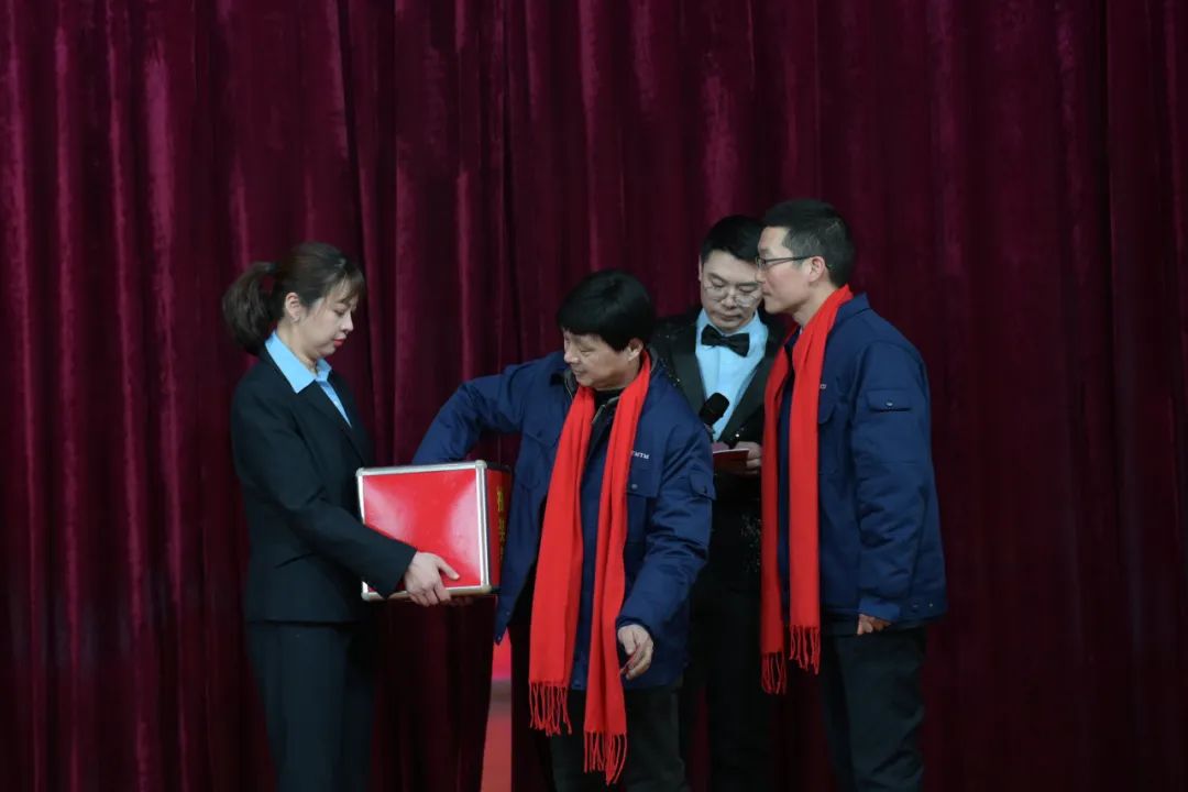公司黨委書記魯?shù)挛男x了《關(guān)于表彰2023年度先進單位、先進個人的決定》,獲得榮譽的個人及單位代表紛紛登臺領(lǐng)獎。