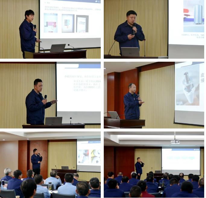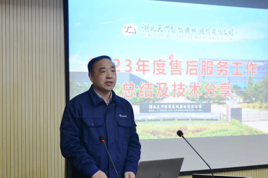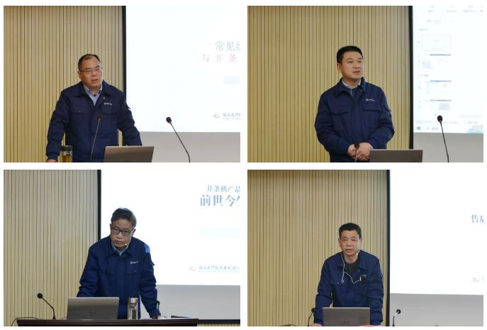 17名售后服務(wù)人員作了2023年度工作總結(jié)及技術(shù)交流;樊早兵總監(jiān)作專業(yè)知識講座;鄭強總工程師安排布置了T1系列并條機改進工作事項;楊文峰副總經(jīng)理作案例分享;于少波主任作經(jīng)驗分享。