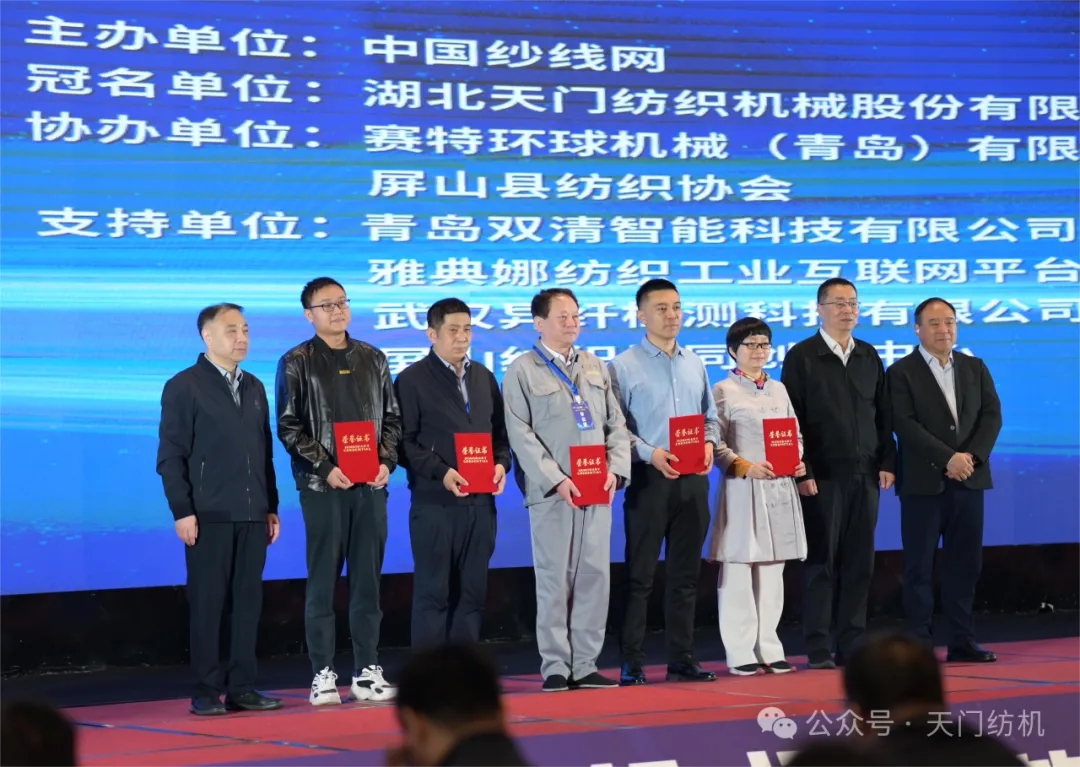 在領(lǐng)導(dǎo)和嘉賓致辭之后,舉行了“天門紡機杯”第12屆全國紡紗技術(shù)創(chuàng)新研討會論文頒獎活動。中國紡織機械協(xié)會會長顧平、中國紗線網(wǎng)總編王果剛、天門紡機總經(jīng)理焦倫進(jìn)為獲獎作者頒獎。