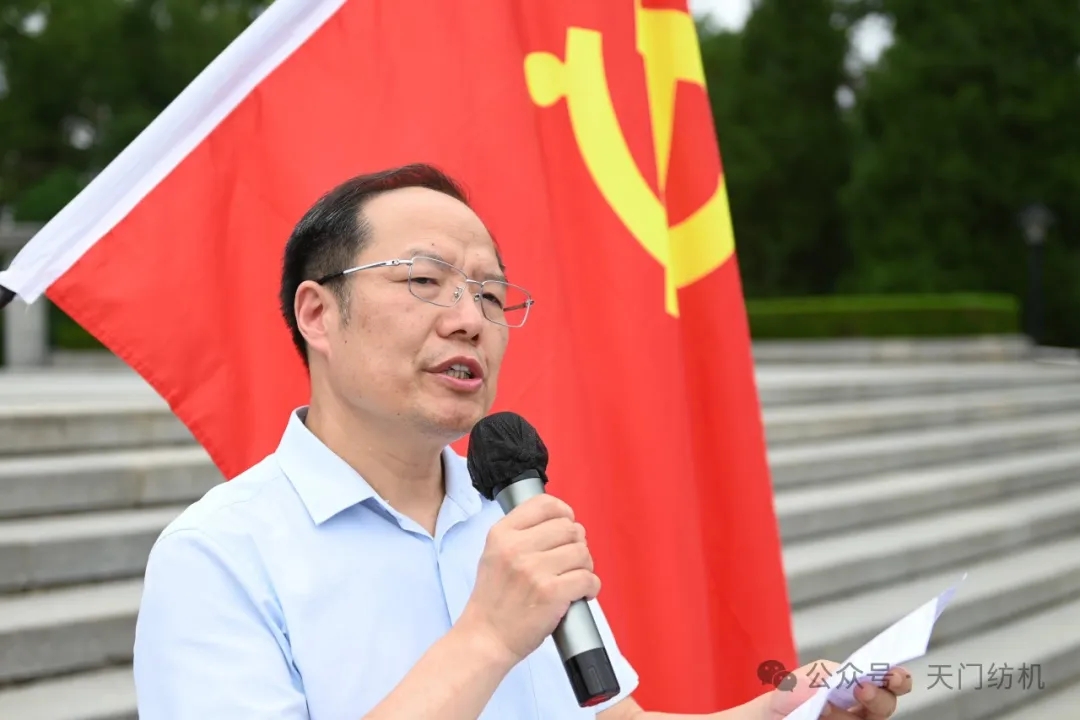 天門紡機黨委書記魯?shù)挛淖髁?ldquo;追尋紅色印記,踐行理想信念”的主旨報告。他回顧中國共產(chǎn)黨奮斗歷程時說:一百多年來,中國共產(chǎn)黨帶領(lǐng)中國人民浴血奮戰(zhàn)、篳路藍縷,從勝利走向勝利,完成了站起來到富起來再到強起來的偉大壯舉,實現(xiàn)了第一個百年計劃,第二個百年計劃也在如火如荼地進行之中,以習(xí)近平總書記為核心的黨中央帶領(lǐng)全國人民以中國式現(xiàn)代化全面推進中華民族的偉大復(fù)興。他強調(diào):無論歲月更迭、企業(yè)變遷,中國共產(chǎn)黨組織始終是天門紡機的政治引領(lǐng)、精神支柱、行動指南;無論是國有企業(yè)時還是民營企業(yè),黨員干部始終是戰(zhàn)斗堡壘、時代先鋒,在企業(yè)生產(chǎn)經(jīng)營活動中發(fā)揮著不可替代的作用。他希望全體黨員干部不忘初心,牢記使命,始終把企業(yè)放在心上,把工作重擔扛在肩上,為天門紡機高質(zhì)量發(fā)展貢獻應(yīng)有力量。