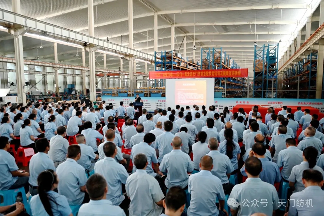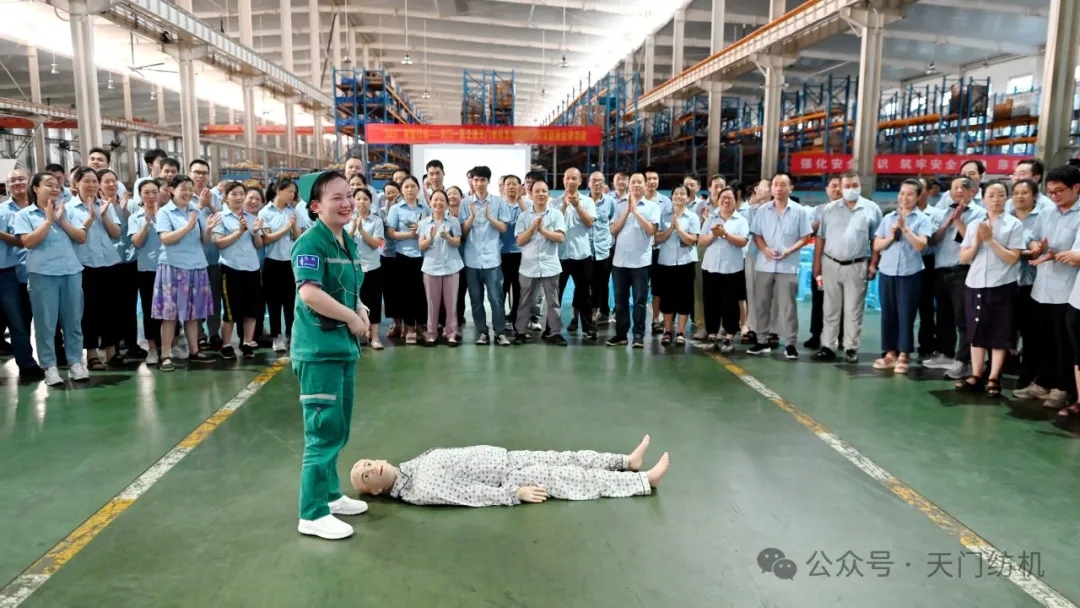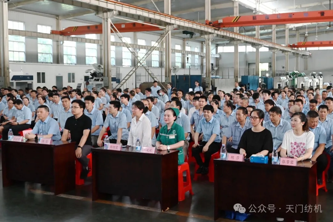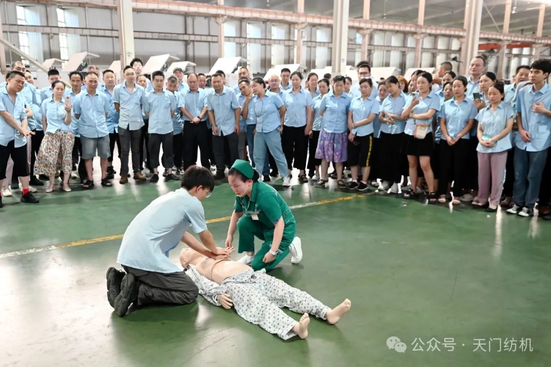 室外赤日炎炎,酷暑難當(dāng);室內(nèi)座無(wú)虛席,氣氛熱烈。2024年7月17日下午,天門(mén)紡機(jī)在生產(chǎn)現(xiàn)場(chǎng)組織了一場(chǎng)別開(kāi)生面的健康知識(shí)及急救技能培訓(xùn)活動(dòng),天門(mén)市第一人民醫(yī)院的多位醫(yī)療專家應(yīng)邀來(lái)公司進(jìn)行健康知識(shí)講座和急救實(shí)操演示。