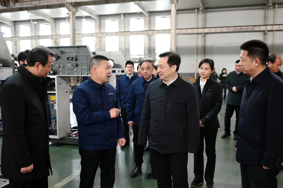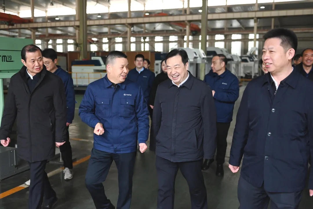 2025年3月4日上午,湖北省經(jīng)信廳黨組書記、廳長汪元程,總工程師盛章學,經(jīng)濟運行處處長王雋,裝備工業(yè)處處長王瓊,原材料工業(yè)處處長鄧忠明,綜合處二級主任科員李雷等一行到天門紡機調(diào)研。天門市委書記、市人大常委會主任紀道清,天門市委副書記、市長肖敏,天門市委常委、副市長曾令慧,天門市委常委、秘書長高文博等市領導及天門市經(jīng)信局黨組書記、局長陳明敏等部門負責人全程陪同調(diào)研。