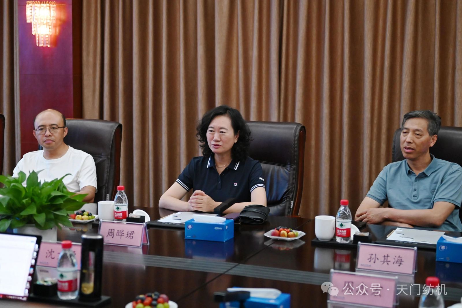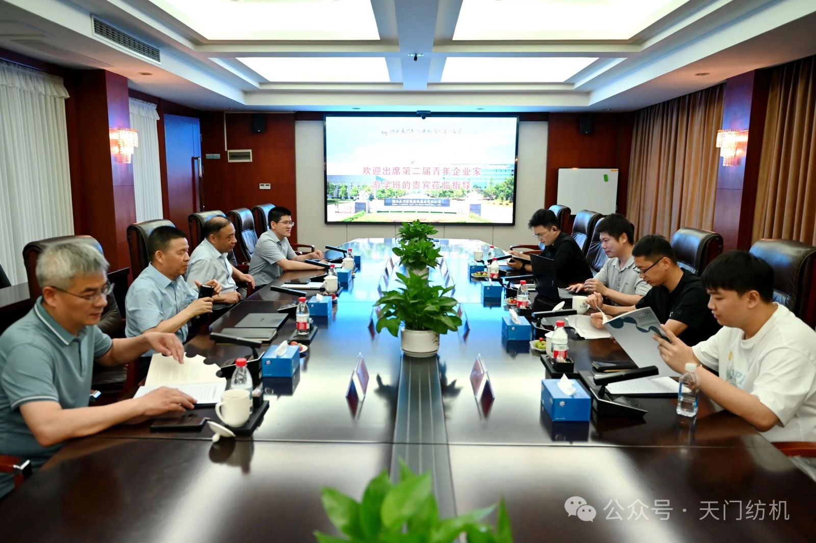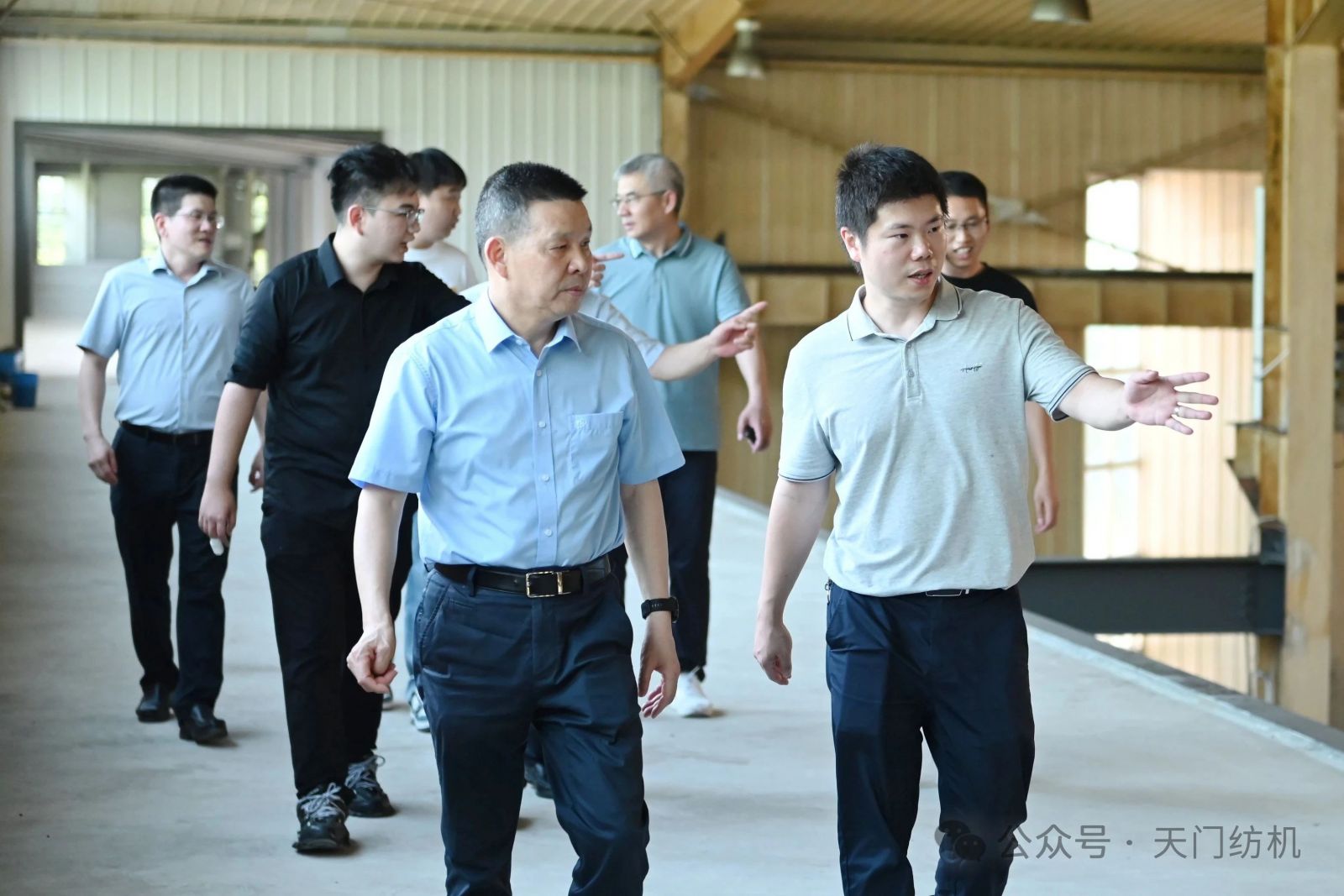 作為本次活動的支持單位,天門紡機盛情邀請了一批行業(yè)領袖和青年翹楚蒞臨公司指導交流。7月9日上午,無錫一棉原董事長周曄珺、中國紗線網副總裁孫其海、鐵門關星宇信達總經理郭超、河南盛泰越南棉紡總經理馬強強等貴賓蒞臨公司調研;當日下午,鄆城東盛總經理劉顯豐、新疆智亞總經理劉顯赫、福建云杉總經理許立、廣東洪興實業(yè)股份有限公司營銷總監(jiān)柯楷楠、鄆城晨龍紡織總經理何邦超等貴賓到訪公司。公司董事長沈方勇、總經理焦倫進全程熱情接待。